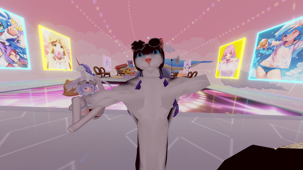 Toggles - Hue Shift (PC ONLY) / White material Swap / Barret / Ears / Glasses / Sleevies up to show hands / Tail / and Tie.